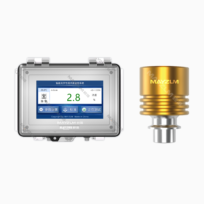 秒准MAYZUM在线浓度计的核心技术基于溶液折射率与浓度的线性关系。设备通过内置的蓝宝石棱镜传感器,实时捕捉溶液对光的折射角度变化,结合内置的温度补偿算法,将折射率数据转换为浓度值。这一原理确保了其在复杂介质中的适应性: